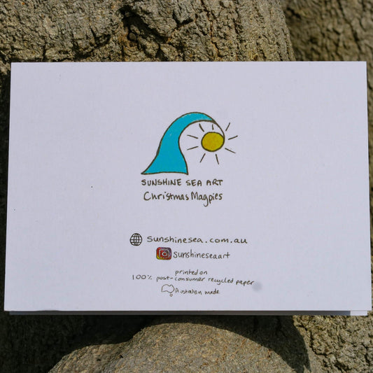 Wrap up Christmas with this beautifully illustrated, 100% recycled, wrapping paper from Sunshine Sea Art. Featuring Magpies, King Parrots, Sulphur-Crested Cockatoos, Catbirds and Superb Parrots, all with seasonal Christmas hats!