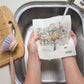 Swedish Dish Sponge Cloth - Australia. A super absorbent plant fibre sponge cloth, designed to replace disposable wipes and paper towels around the home. Mop up spills, wipe down kitchen surfaces or freshen the bathroom with this reusable and compostable sponge cloth. Made in Sweden. One only - Australia design.
