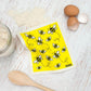 Swedish Dish Sponge Cloth - Bees. A super absorbent plant fibre sponge cloth, designed to replace disposable wipes and paper towels around the home. Mop up spills, wipe down kitchen surfaces or freshen the bathroom with this reusable and compostable sponge cloth. Made in Sweden. One only - Bees design.