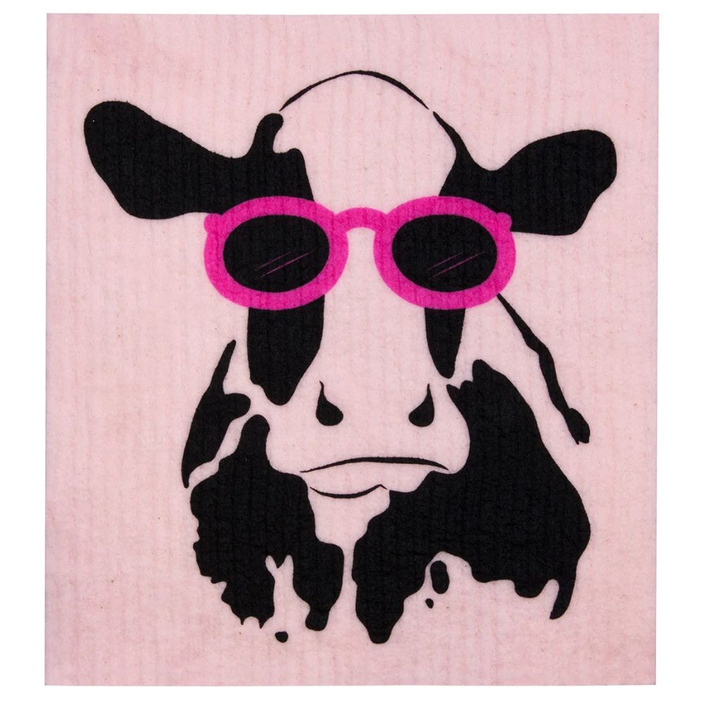 Swedish Dish Sponge Cloth - Cows. A super absorbent plant fibre sponge cloth with a cow print, designed to replace disposable wipes and paper towels around the home. Mop up spills, wipe down kitchen surfaces or freshen the bathroom with this reusable and compostable sponge cloth. Made in Sweden. One only.