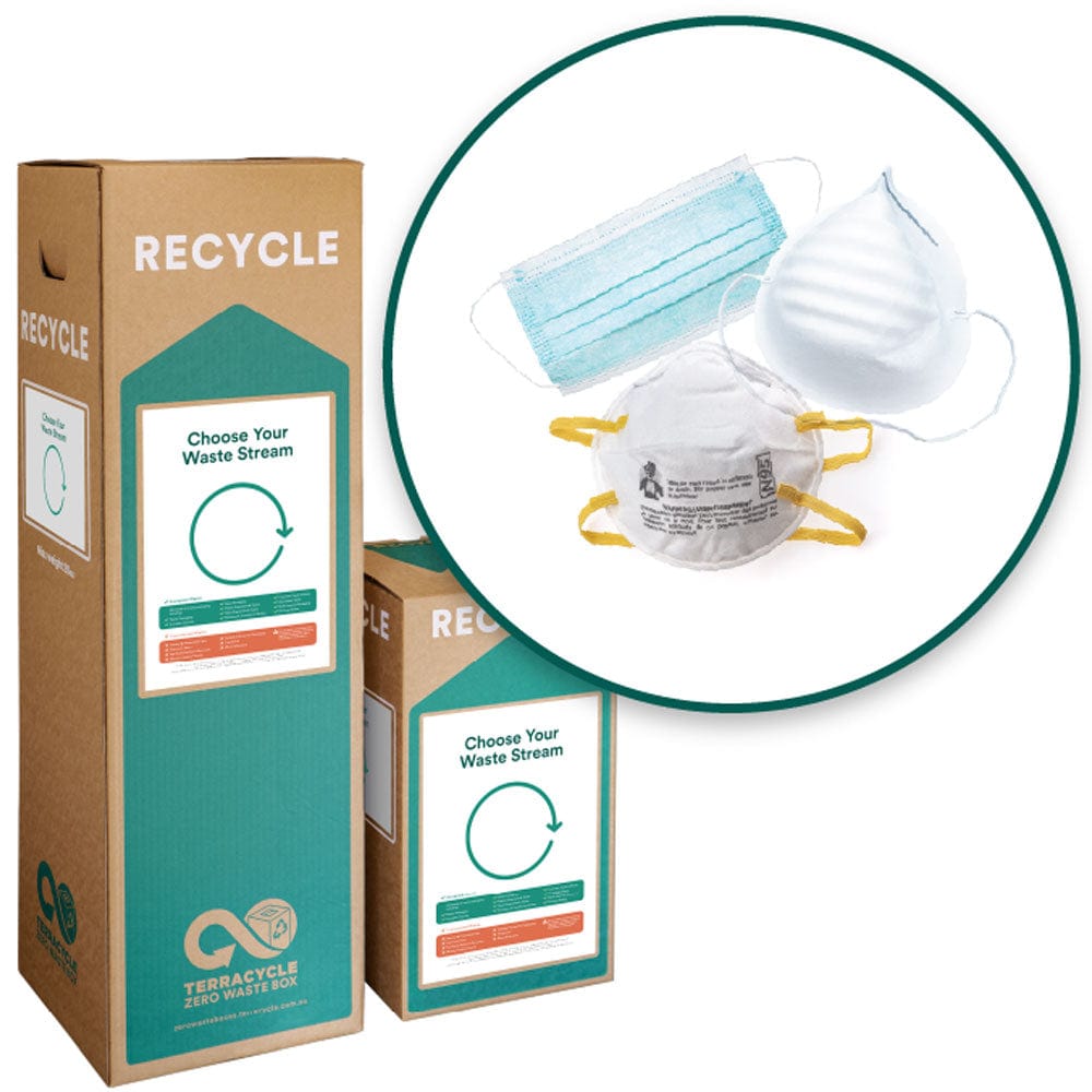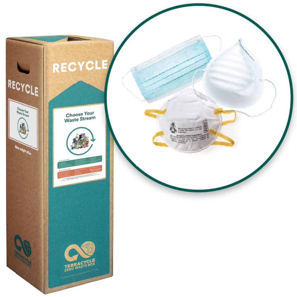 TerraCycle Zero Waste Recycle Bin - Masks. Use to recycle medical, industrial, or costume masks. Reduce your waste by recycling unrecyclable" products. Small and medium sizes available.