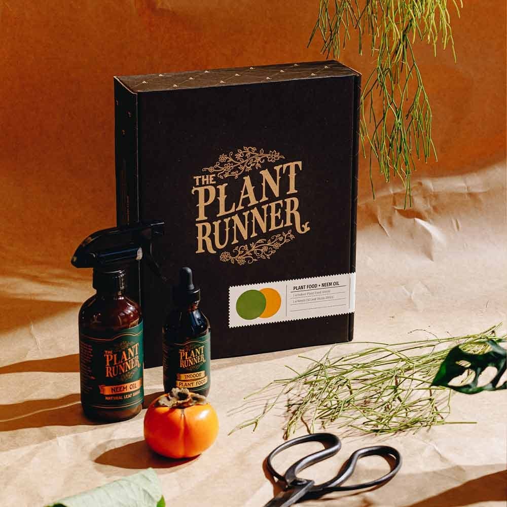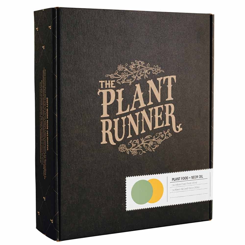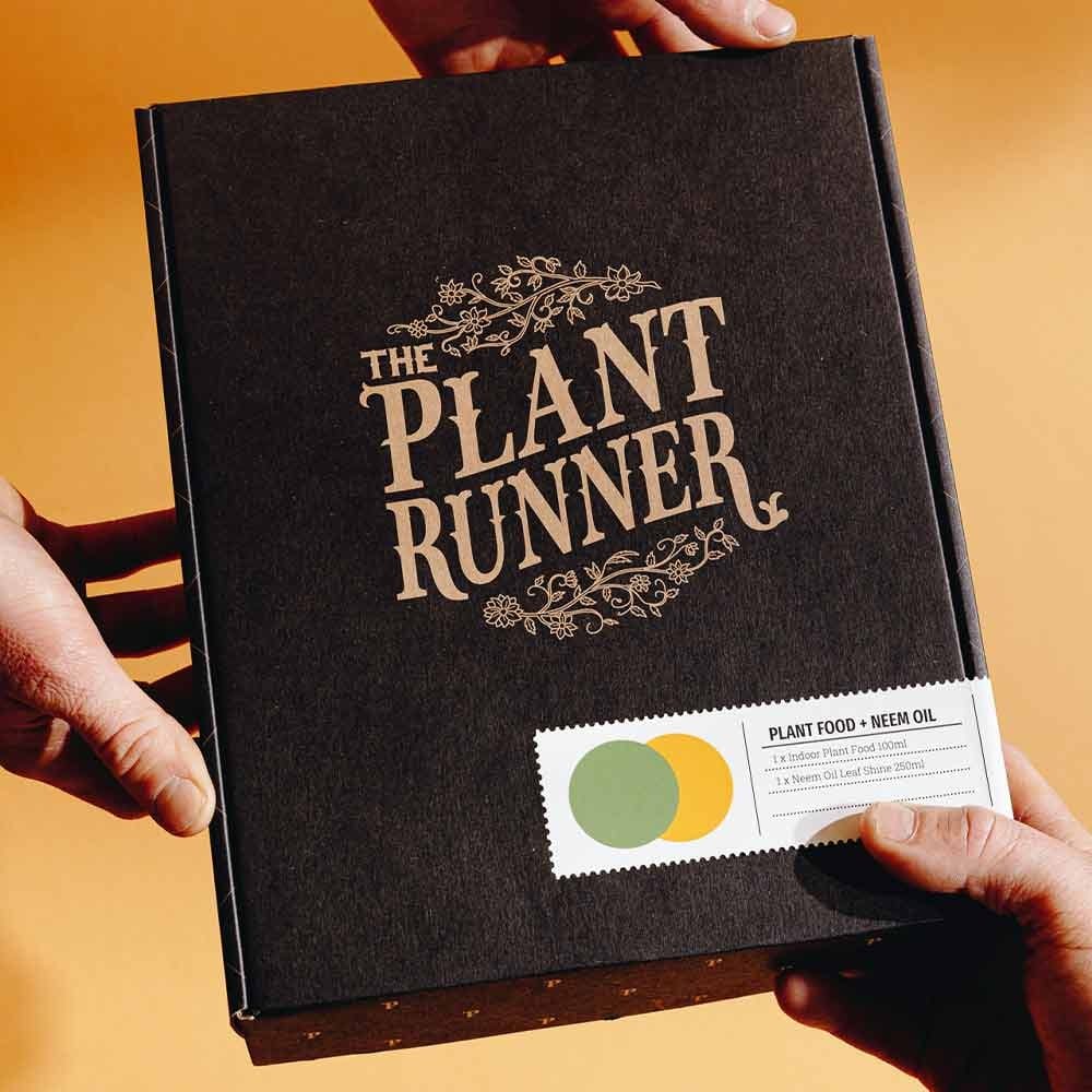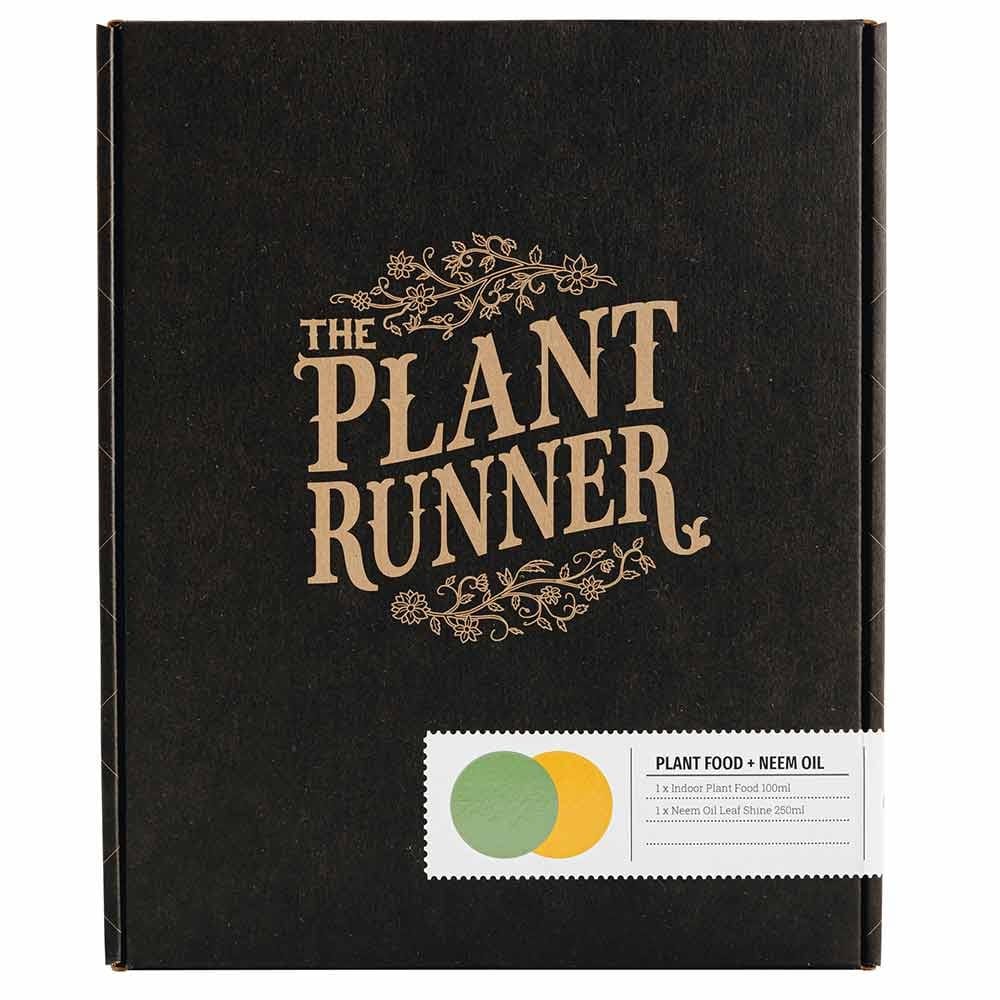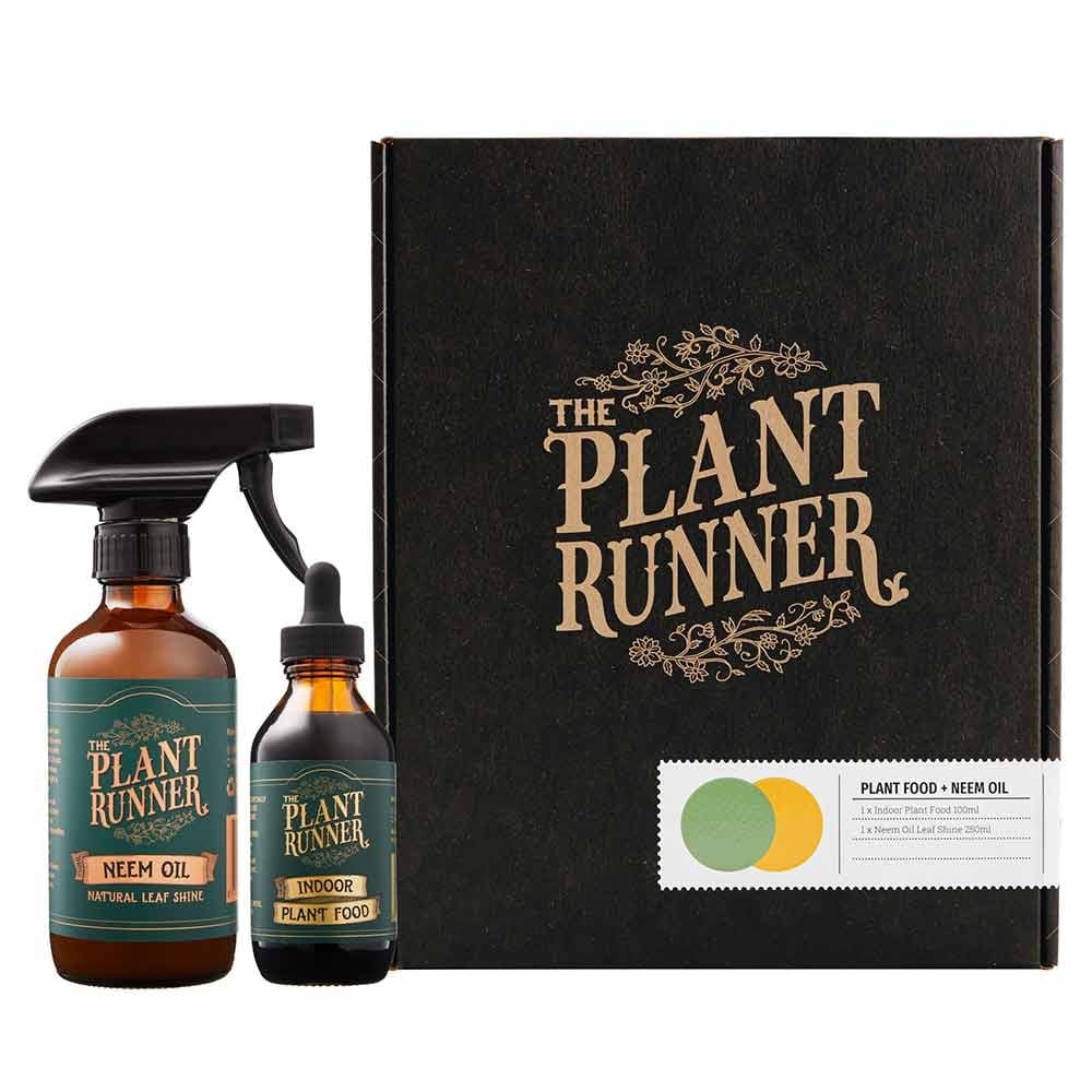 The Plant Runner Plant Care Essentials Kit. The essential indoor plant care kit packaged neatly in a bespoke gift box. Each set contains a bottle of the Indoor Plant Food and a bottle of Neem Oil Leaf Shine - the essentials for a thriving plant family. Bottled in amber glass and made in Australia. Makes a great gift for the plant lover in your life.