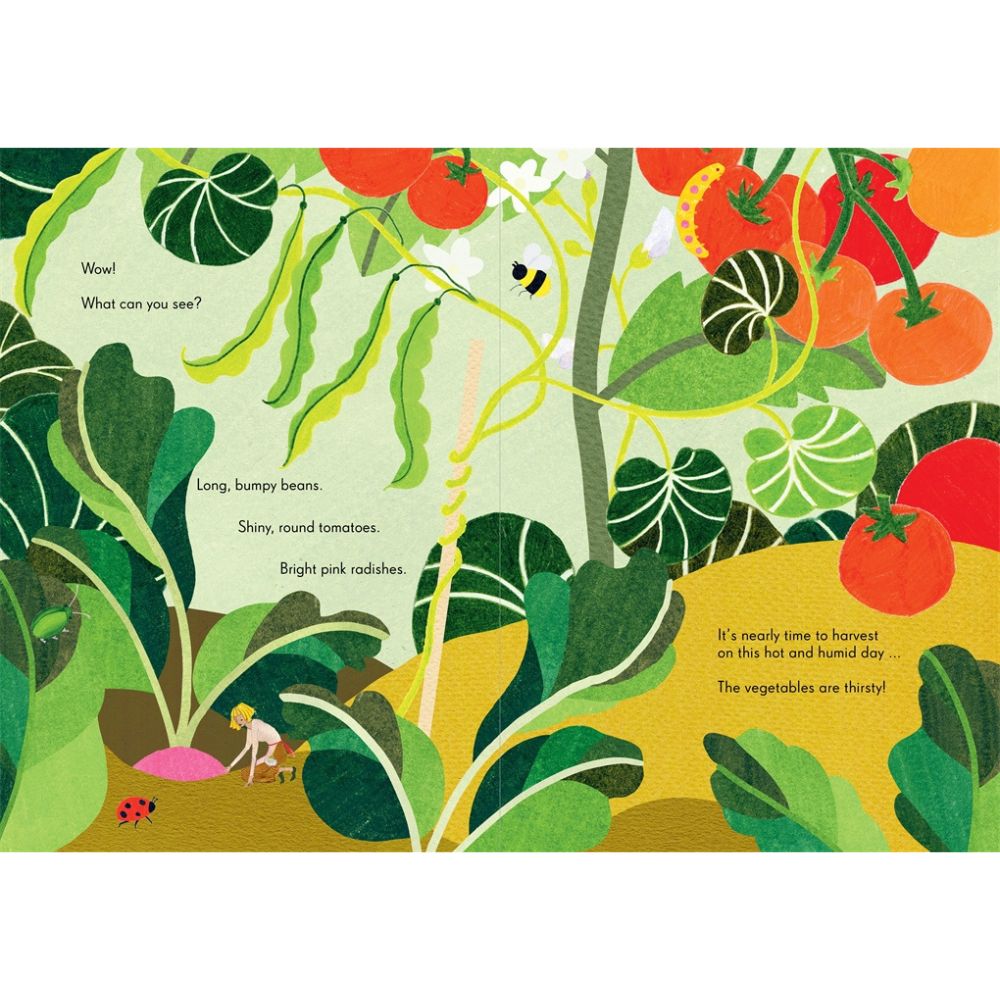 Join the Tiny Gardeners as they grow fruit, vegetables, flowers and herbs for the upcoming Summer Market. See the long and bumpy beans! Taste the fresh and juicy strawberries! Feel the spikey rosemary sprigs! Smell the sweetly scented honeysuckle! Everything is almost ready to pick, but it’s a hot, humid day and the garden is looking dry and thirsty … just a moment … can you hear that? Kat Macleod’s newest picture book, The Tiny Gardeners, navigates the process of preparing, growing and harvesting a productive garden through the five senses: sight, taste, touch, smell and sound.