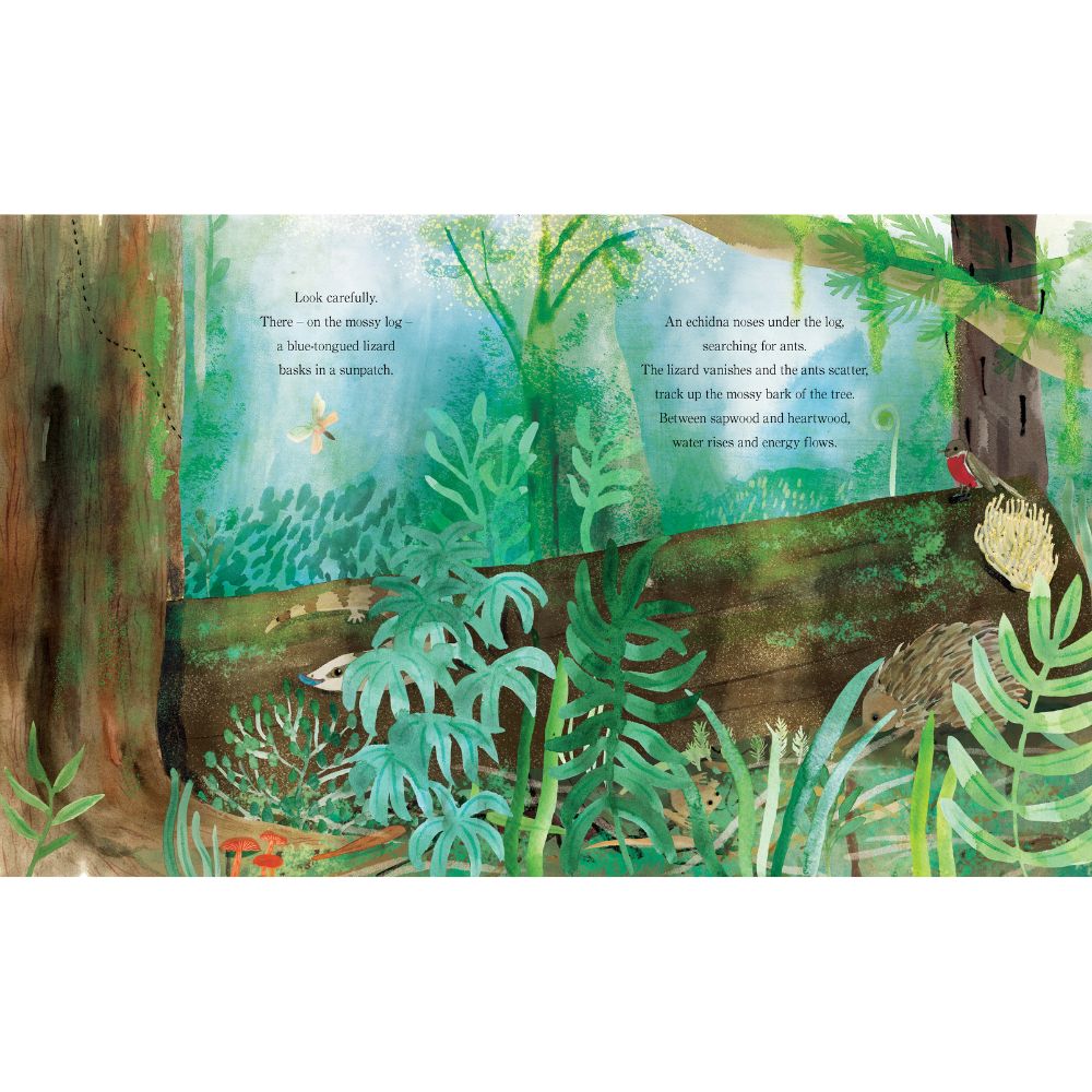 Marrying deep scientific research, lyrical language and stunning illustrations – multi-award-winning and highly acclaimed creators Claire Saxby and Jess Racklyeft return with a change in environment, from ocean to land. Their new collaboration follows a mighty tree, from the bottom of its roots up to the tips of its upper branches.