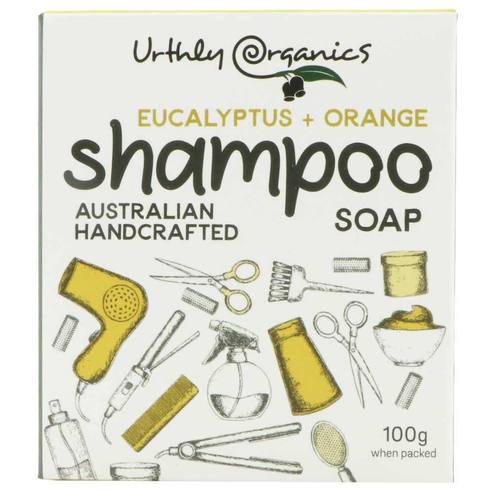 Urthly Organics Hair & Body Shampoo Bar - Orange Eucalyptus. A palm oil free all-over bar soap to cleanse your hair and body. Great for all hair types, but especially good for dreadlocks. Made on a base of nourishing plant oils and enhanced with orange and eucalyptus essential oils. Made in Central Victoria, Australia. Free from SLS, SLES, parabens, fluoride, titanium dioxide, glycols, fragrance and mineral oils. 100g.