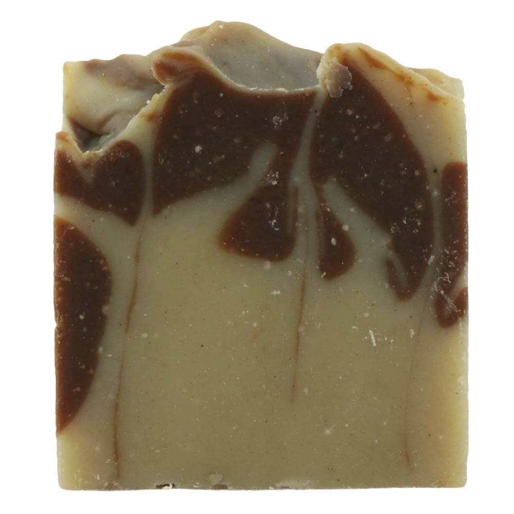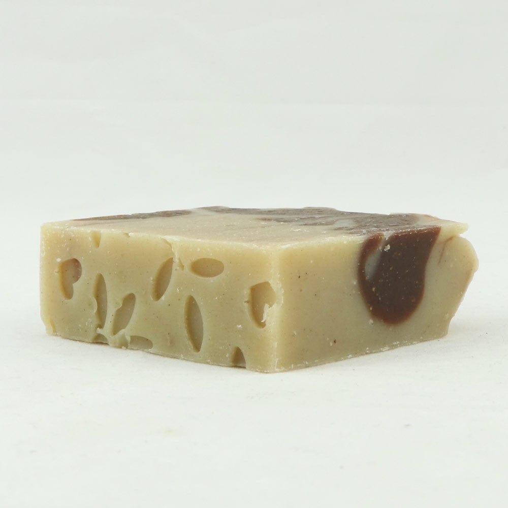 Saponified *olive oil, coconut oil, *cocoa butter, *shea butter, *hemp seed oil and macadamia oil, patchouli essential oil, ground hemp seeds and Fair trade cocoa. *Organic ingredient.