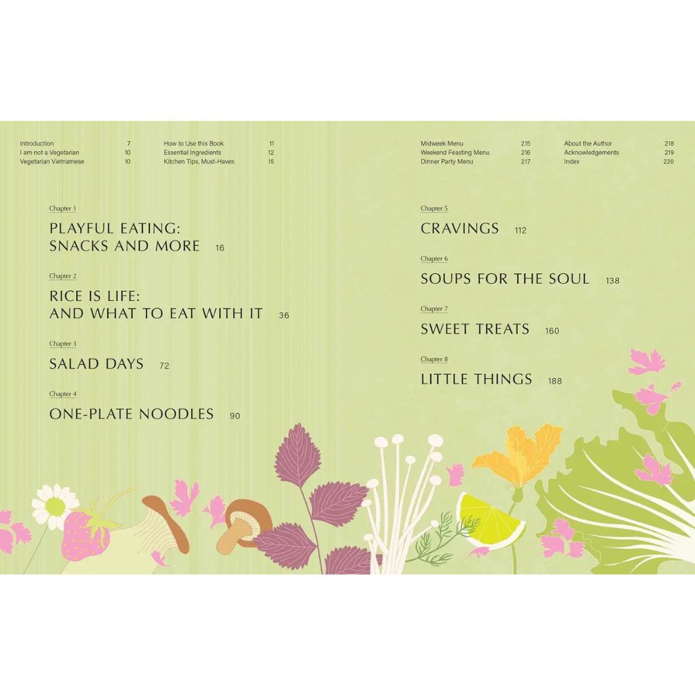 From quick dishes such as Sweet Potato Noodles with Roasted Fennel and Sweetheart Cabbage and Omelette Banh Mi, to dishes fit for a feast such as Mushroom and Tofu Phở and Rice Paper Pizza, as well as sweet treats like Rainbow Dessert and Lotus and Purple Sweet Potato Rice Pudding, there is a vast array of dishes for any occasion.