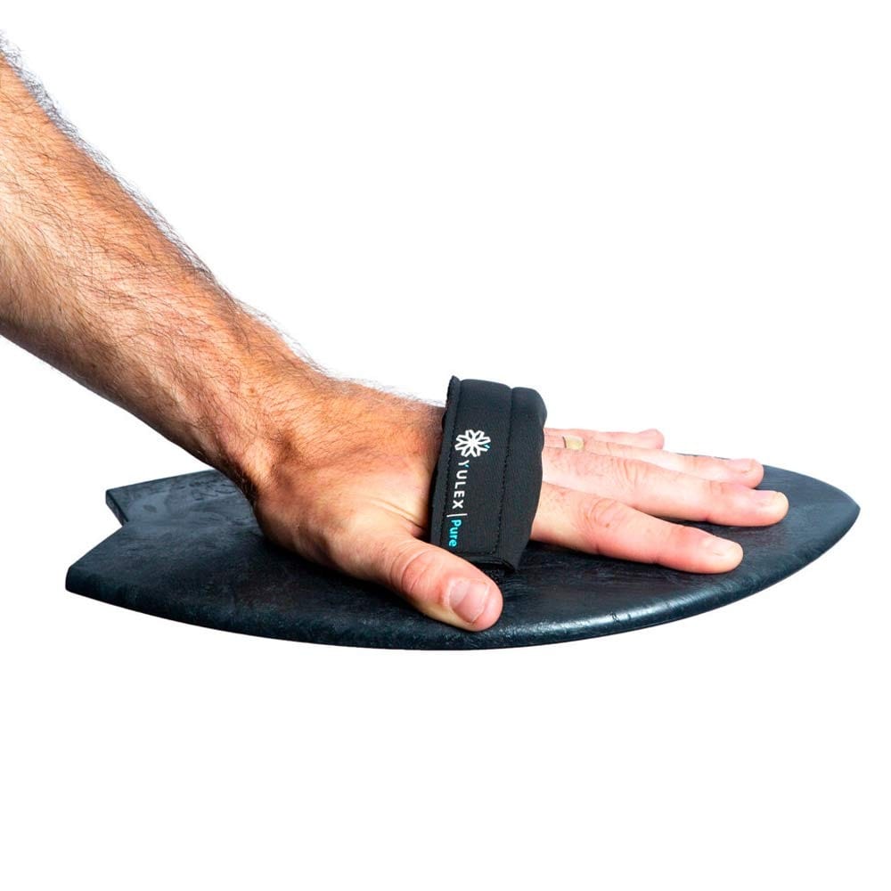 A body surfing handplane is a planing device that is worn on the lead hand of a body surfer. It enhances the body surfing experience by generating lift and reducing drag. This allows the body surfer to surf faster and ride the wave for longer.