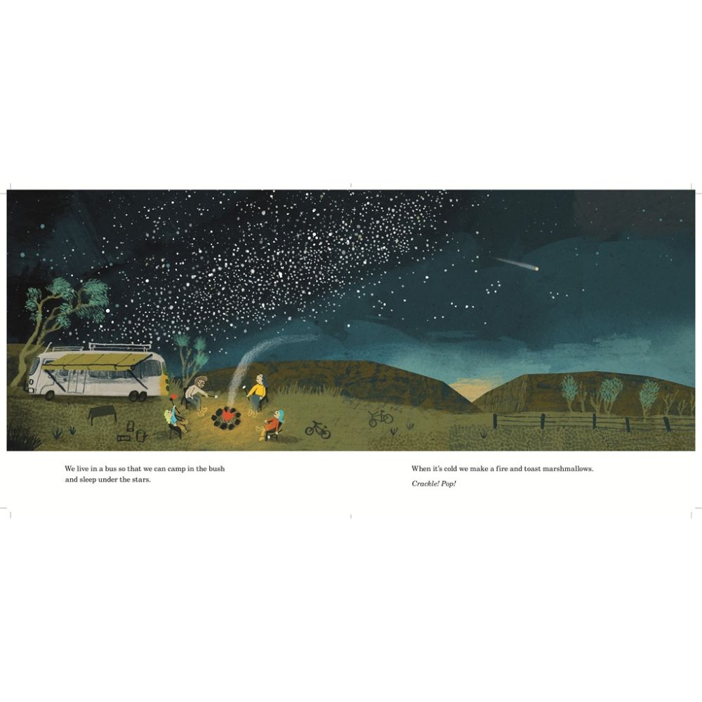 We live in a bus. She’s called Gracie Joy Rufus Bean (we couldn’t agree on a name).