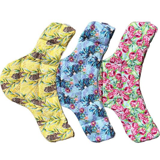 This lavender-scented eyepillow is designed to soothe sore eyes and relieve headaches. Handmade ethically in Melbourne, Australia using natural cotton, organic lavender and Australian wheat, with a beautiful watercolour print. These wheatbags are suitable for heating in the microwave or as a cold-pack from the freezer.