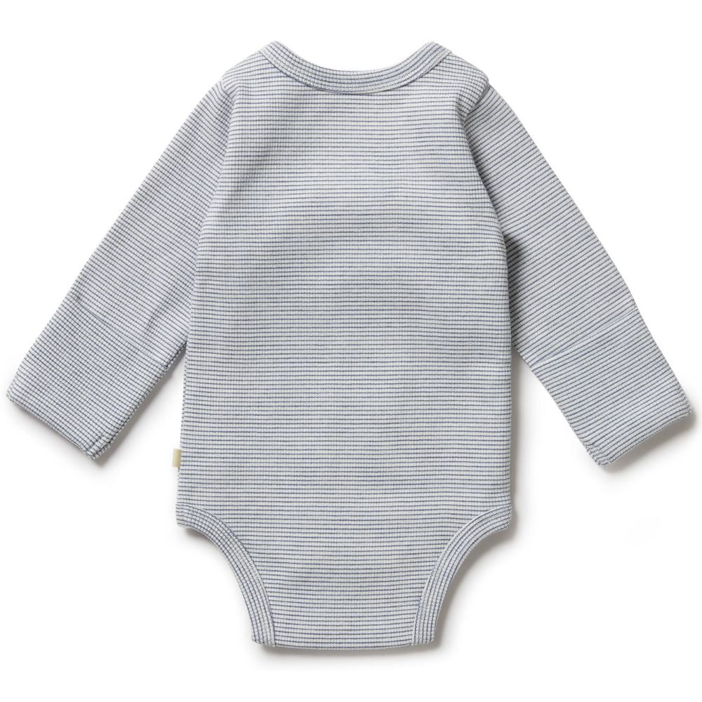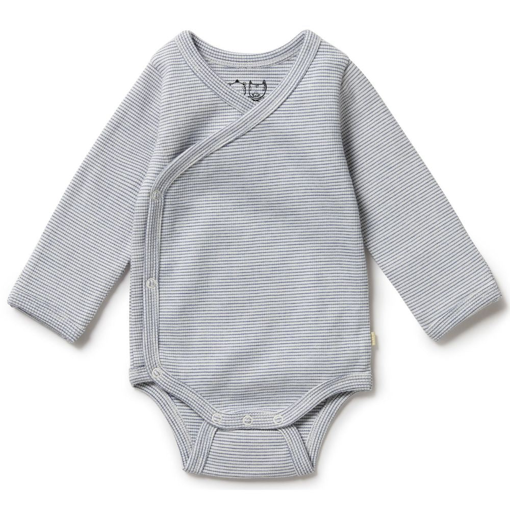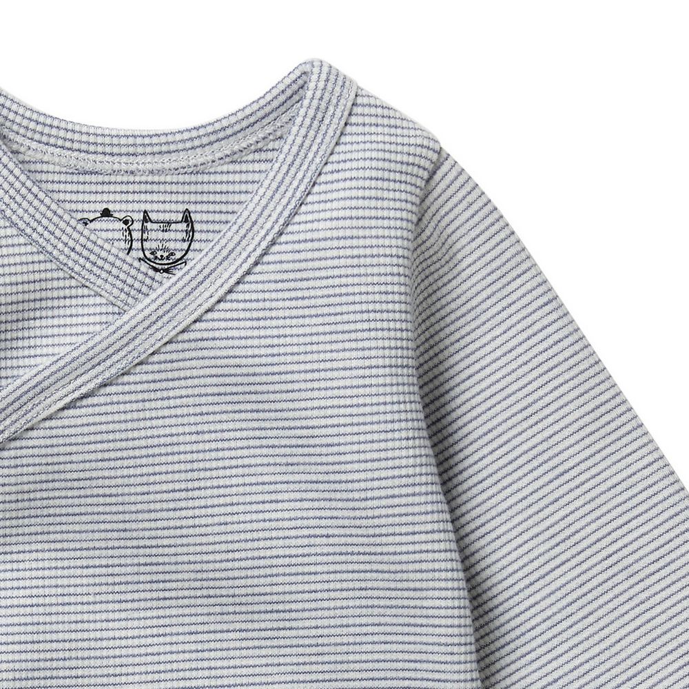 Wilson & Frenchy Organic Stripe Rib Wrap Bodysuit - Rain Drop