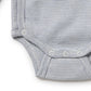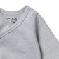 Wilson & Frenchy's Organic Stripe Rib Kimono Bodysuit in Rain Drop is designed with skin-friendly materials and comfort in mind. It features a crossover snap closure and snap leg openings, allowing for fast and convenient changes.