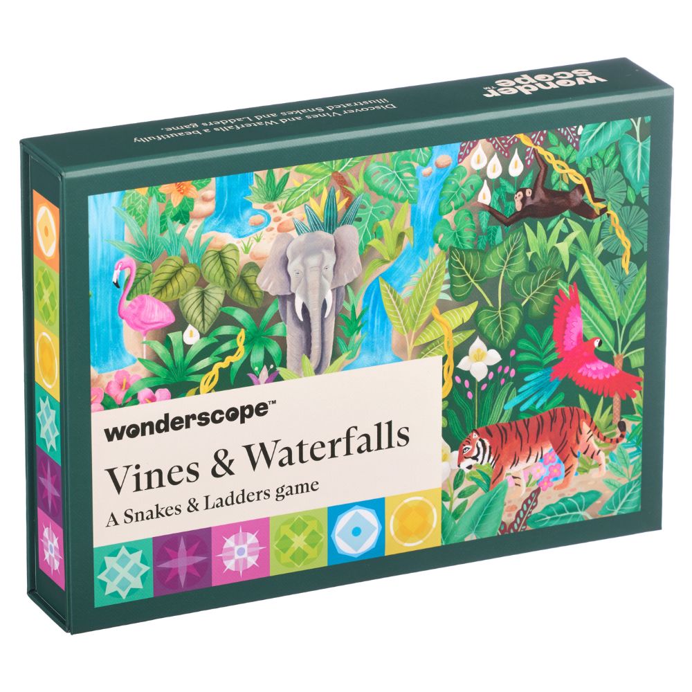 Go on a jungle adventure through Wonderscope's Vines and Waterfalls, featuring the stunning illustrations by Bex Parkin. This fun take on the classic Snakes and Ladders will provide hours of fun for the whole family.