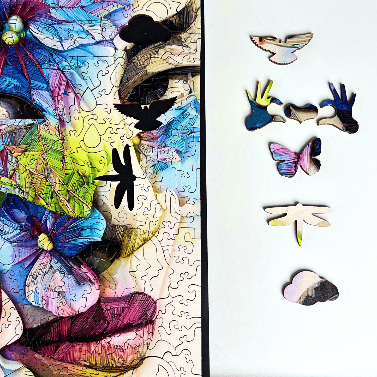 Puzzle pieces also feature unique designs: find butterflies, clouds, inspects and more.