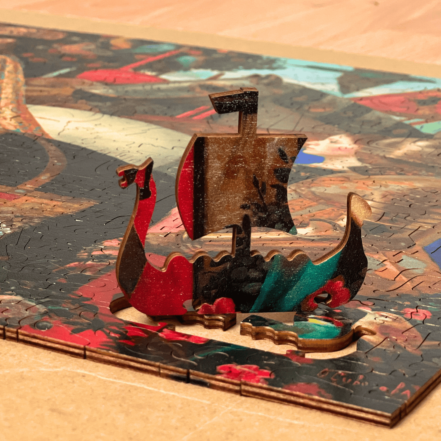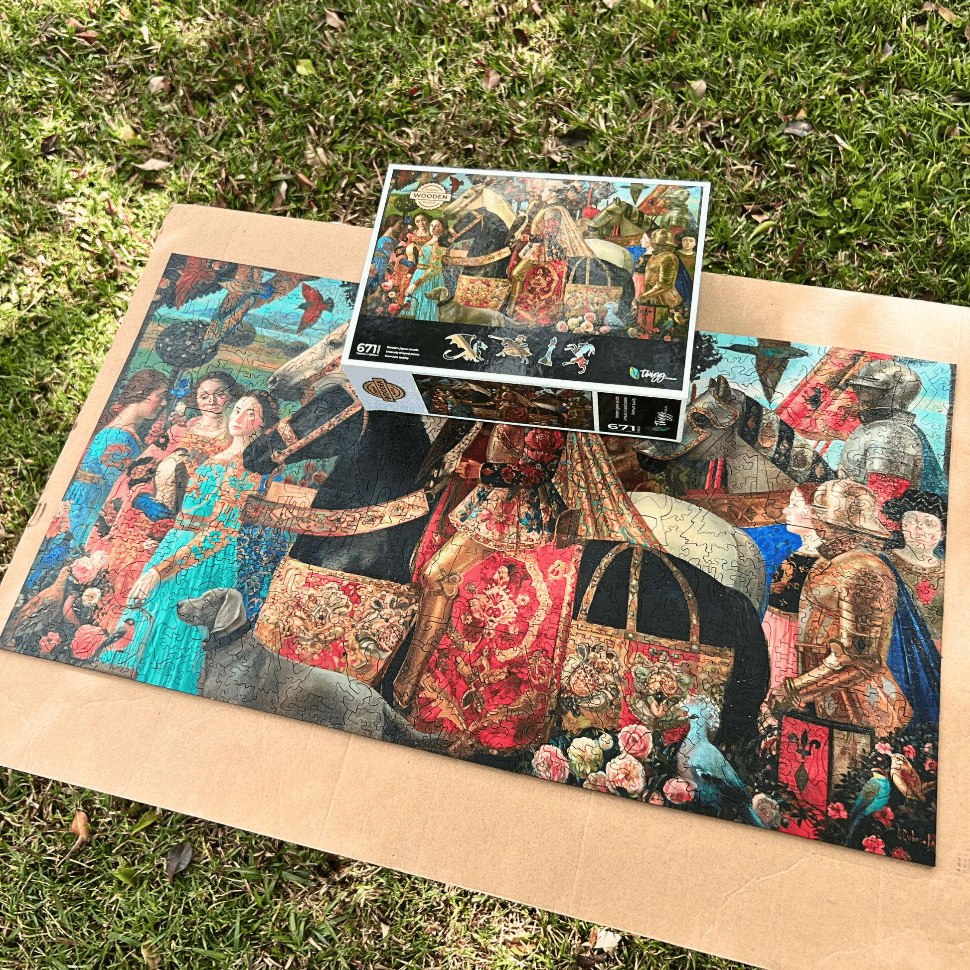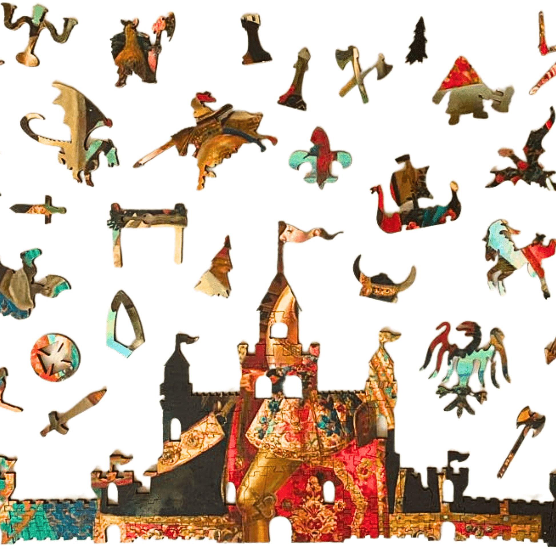 Do you love getting lost in a the world of knights, castles and royalty? Then this Wooden Jigsaw Puzzle by Twigg is for you. This 671-piece puzzle is made from high-quality plywood and features original art by an international artist. A creative twist on classic wooden puzzles for adults!