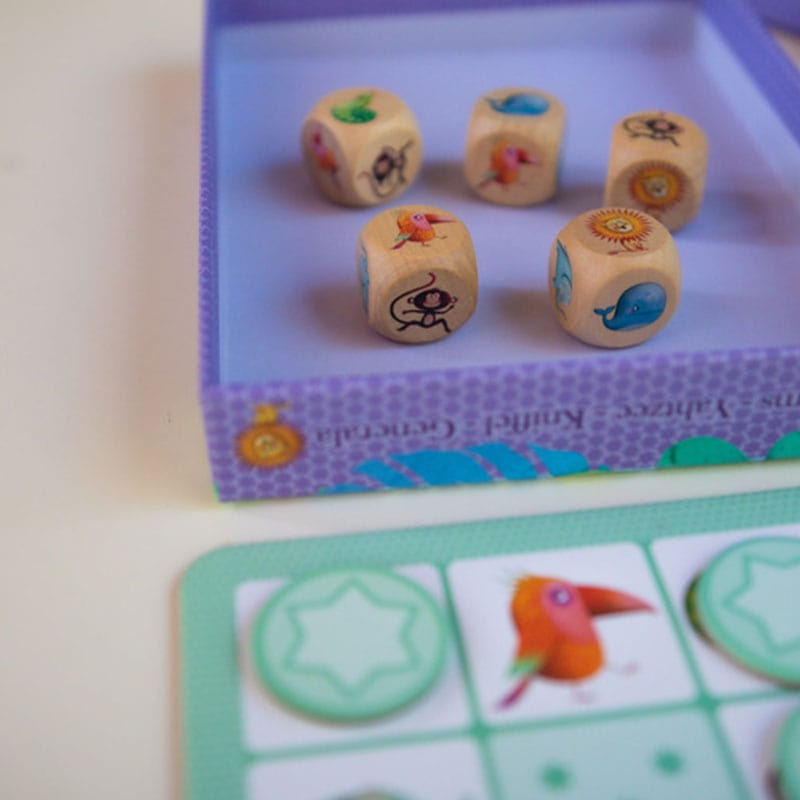 A colourful, animal-themed game of Yahtzee for children