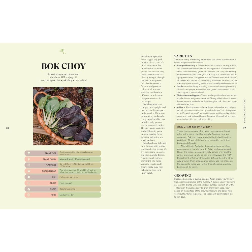 Your Asian Veggie Patch is a comprehensive, beginner-friendly guide to growing and cooking Asian vegetables, herbs and fruits at home. Permaculture gardener Connie Cao guides you though a curated selection of more than 40 cool-season and warm-season annuals and perennials (from amaranth greens, bok choy and daikon to loofah, pandan and yuzu), meaning it's easy to find produce that will thrive in your garden and climate.